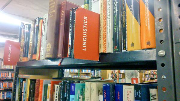 And finally, here’s a photo of the linguistics section in Strand Books, from when I visited New York City this month. I’m especially pleased that they have separate sections for linguistics and etymology!