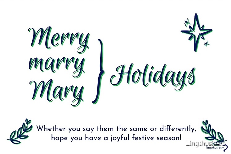 - And with various and sundry gift-giving holidays on the horizon, we’ve also got a Merry/marry/Mary Holidays greeting card and sticker.