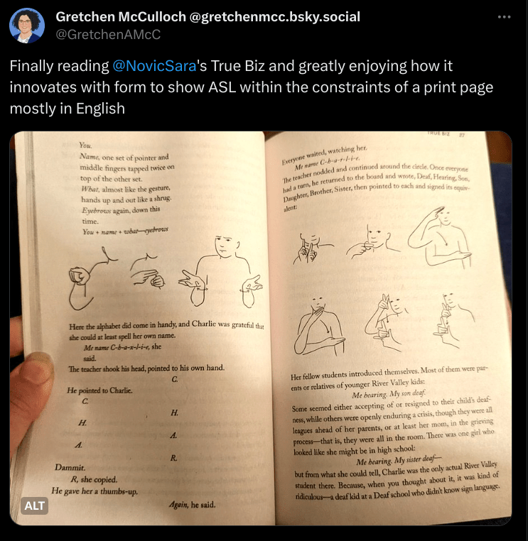 And somewhere in between: Because Internet made an appearance in an episode of Words Unraveled. @efrex.bsky.social made a nice callout to my interview on Let’s Learn Everything. And Linguistic Discovery would like to remind you that the internet is encouraging, not ruining, writing.